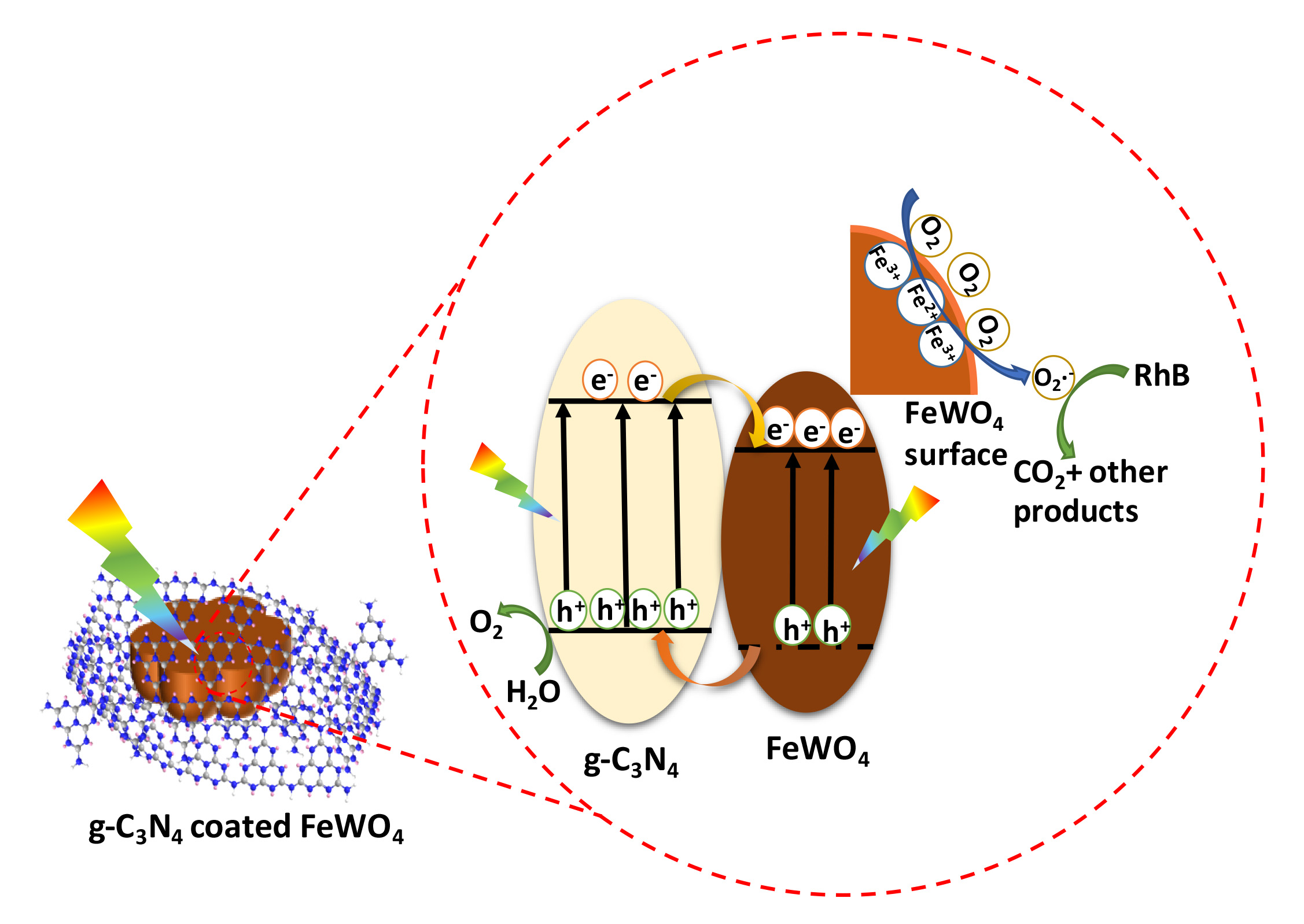 In Situ Growth of g-C3N4 on Hexangular Flowerlike FeWO4 Microcrystals: Highly Efficient Catalyst and the Crucial Roles of Fe3+/Fe2+ Couple in the Photoassisted Oxidation and Reduction Reactions